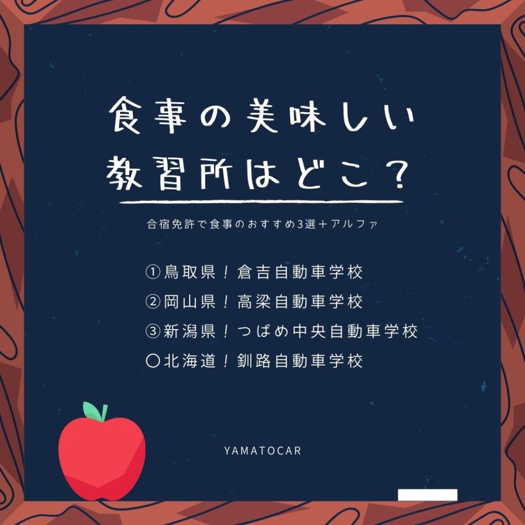 2週間と長い期間、毎食楽しく過ごしたいと思いませんか?食事が美味しいと評判の教習所を探しましたので、ぜひ参考にしてみてください!